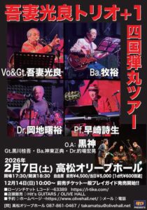 旧くからの友人K東さん、K川君の所属するバンド「黒神」の皆さんのお誘いで四国に弾丸ツアーで参ります。一泊のみで帰ってきます。うどんはおそらく二回は食べます。お酒はぬるめの燗、は飲みません、やはりワインが良いです。と、そんな贅沢を言っている場合ではありません、2026年発の本州外ツアーでもありますので気を引き締めて臨みたいと思います。