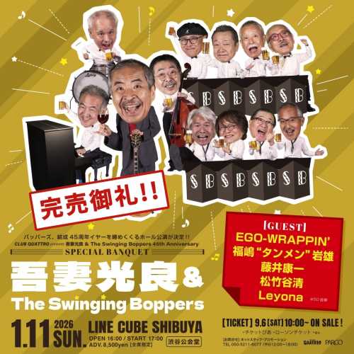 西村入道(vo,h),吾妻光良(vo,g),倉本巳典(b),早崎詩生(pf)