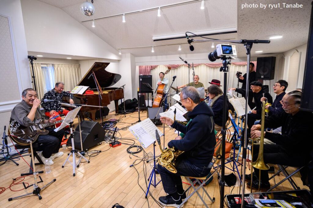2025年のライヴ納めは新宿ピットイン、しかし昨年とは違って昼の部ですので、安全確実に年内に帰宅できる、というありがたいスケジュールです。ということで張り切って11時にお店に行くとまだステージはセッティングの真っ最中、そして他のメンバーは誰も来ていない、ということでどうやら集合時間を一時間ほど間違えてしまった様です。手持ち無沙汰なので、楽屋に使わせて頂いている向かいのスタジオのピアノでも弾いて待ってようか、とも思ったのですが、飲んでもいない、更に誰も聞いていない、という状態だとそんなに楽しいものでもなく、すぐにやめてしまいました。そうこうするうちに皆さん徐々に参集されてリハーサルがスタート。