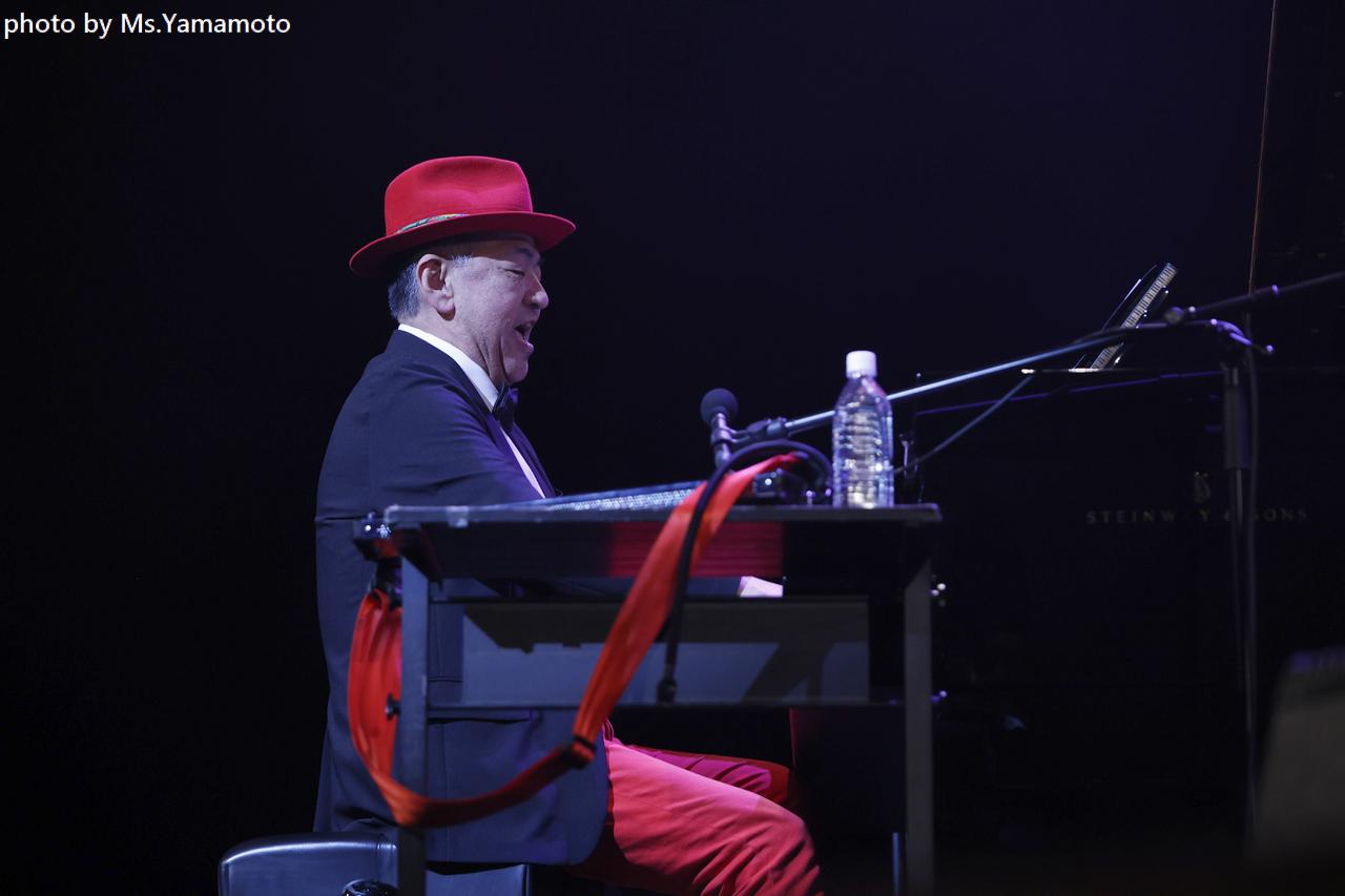 Moccolyさんのために何か特別に踊り向きの曲を用意しているのか、というと照本さんが書いた自作曲、”Moccolyマンボ”があるぐらいで、後は普段の曲を演っているだけですが、おお、そうか、ダンスのことを歌った曲があったな、と取り上げたのが、ビリー・ザ・キッド・エマーソンの”Do The Chicken”。即座に鳥真似を披露するMoccolyさんもさすがです。