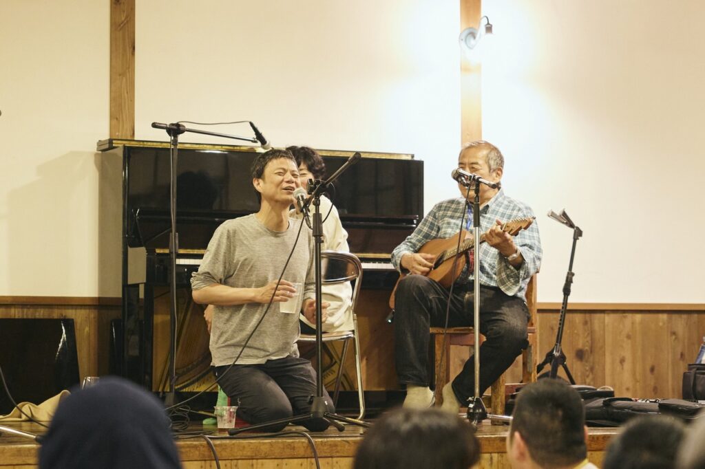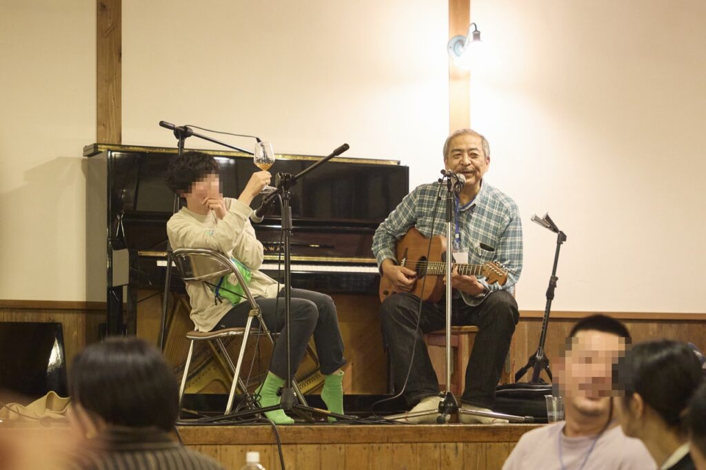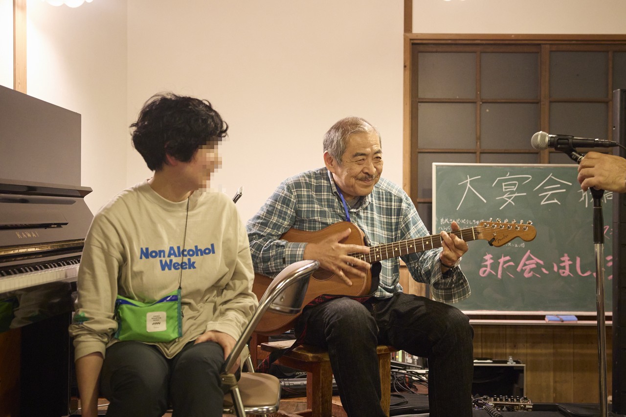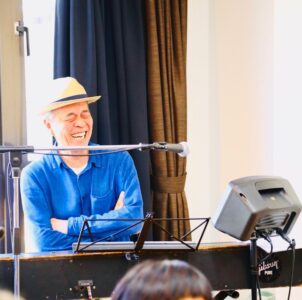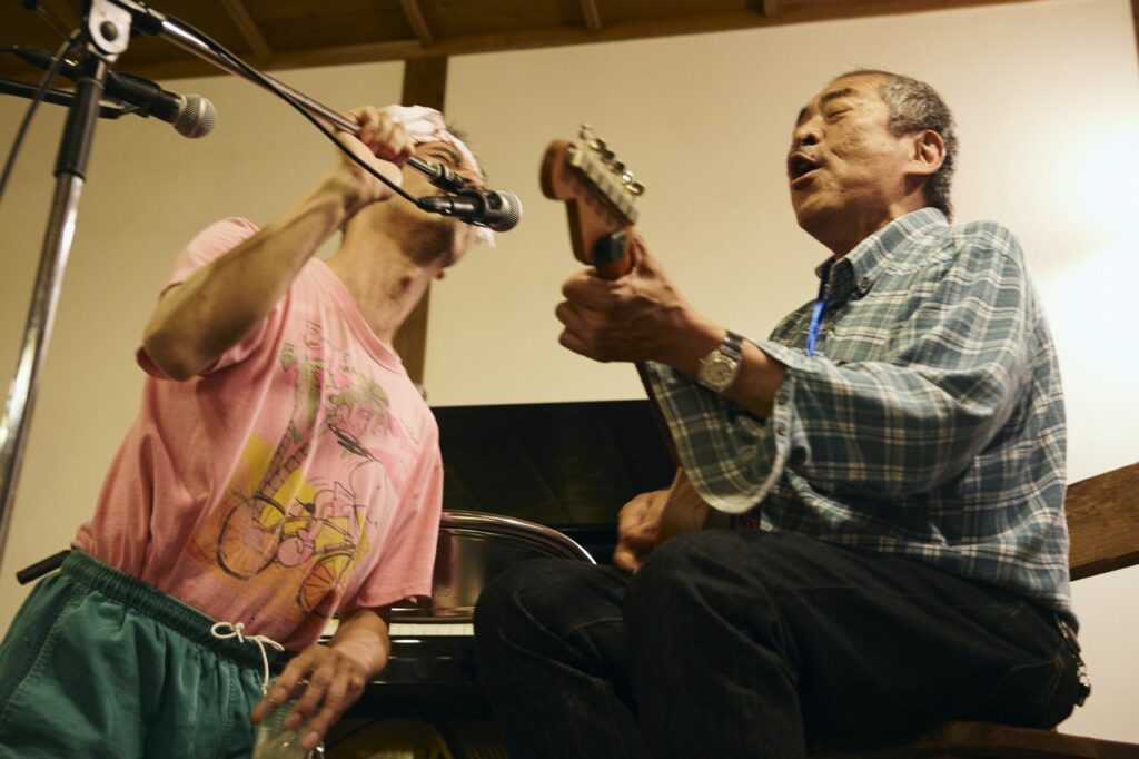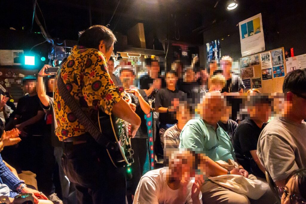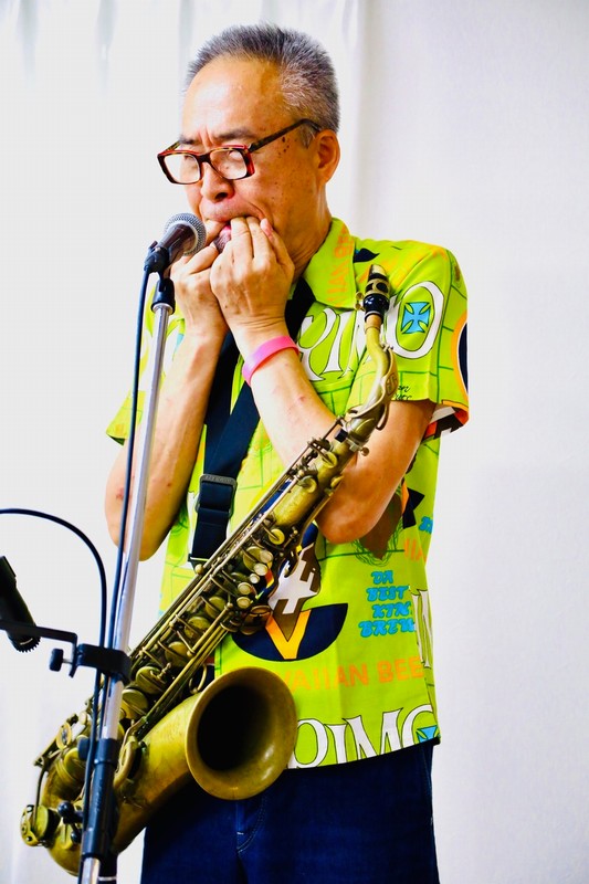 よほど福島さんが話好きなのか、おじいさん達が聞き上手なのか、どちらでしょうか。ま、ともあれそう考えると喋ってばかりいた様な気もします。そしてアンコールでは通常運行に戻り、ピアニカと電池アンプで客席に乱入。