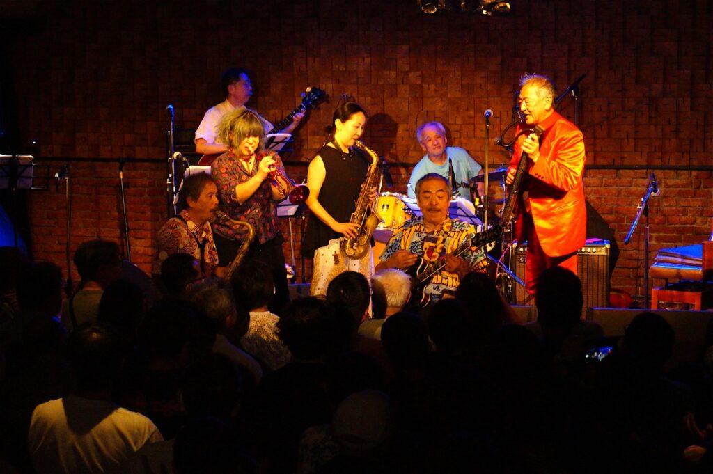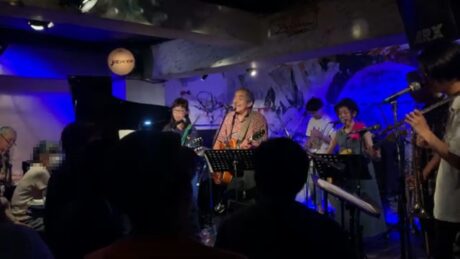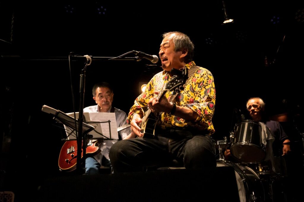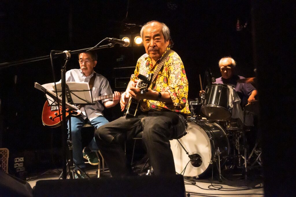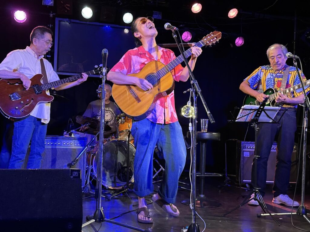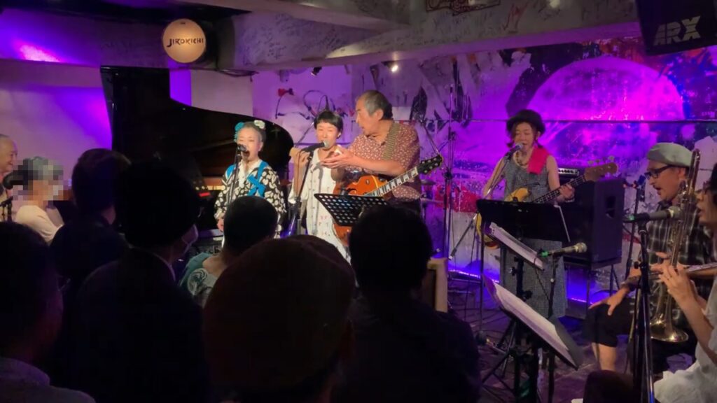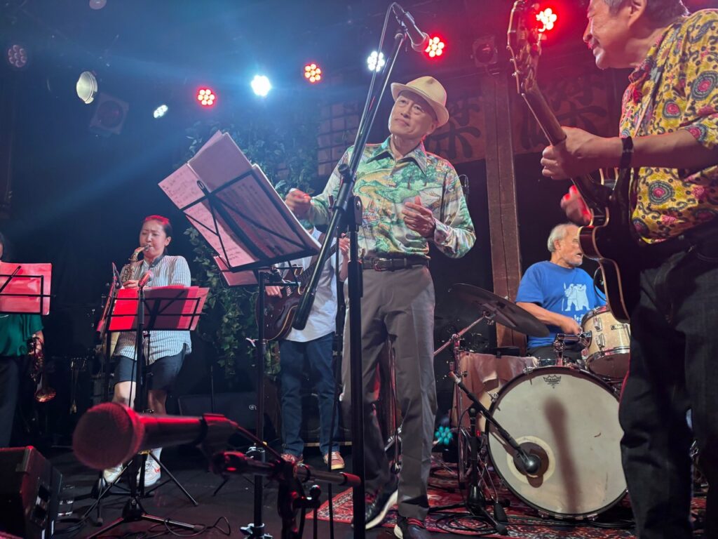 やはり福島社長の根っこにフォークがあるからなのか、フォーク・グルーブの様な見た目になっているのが珍しい画です。そしてバンバンの皆さんは結構コーラスが達者なのですが、一見さんがそんなに急にうまくコーラスの輪の中に入れるか、というとそれは結構難しい話でそういう局面でも何とかついていこう、という緊張感が表れていました。こういうのがボケ防止には大切なのであります。