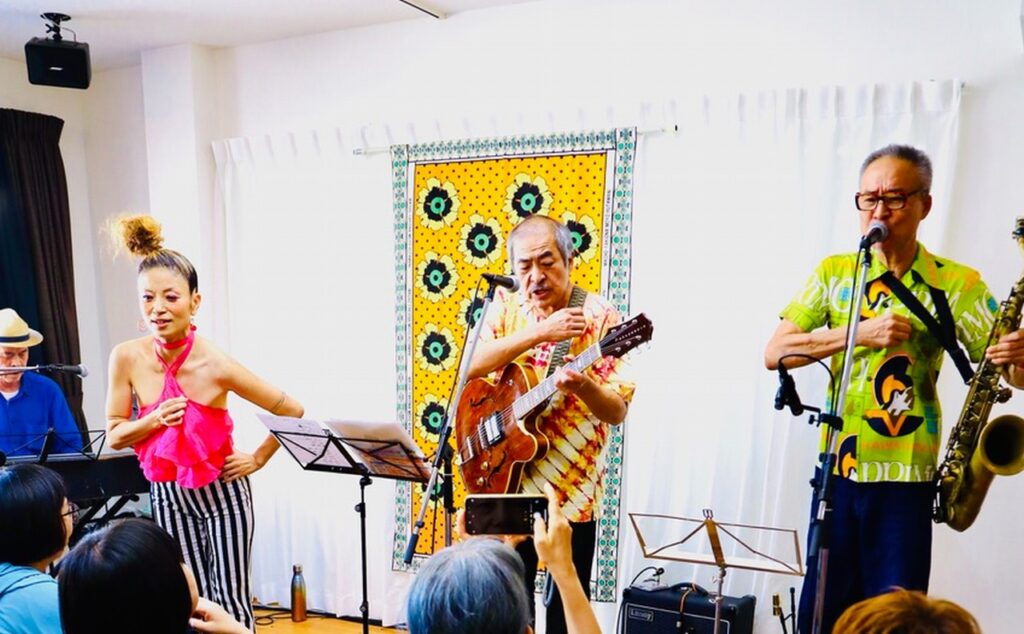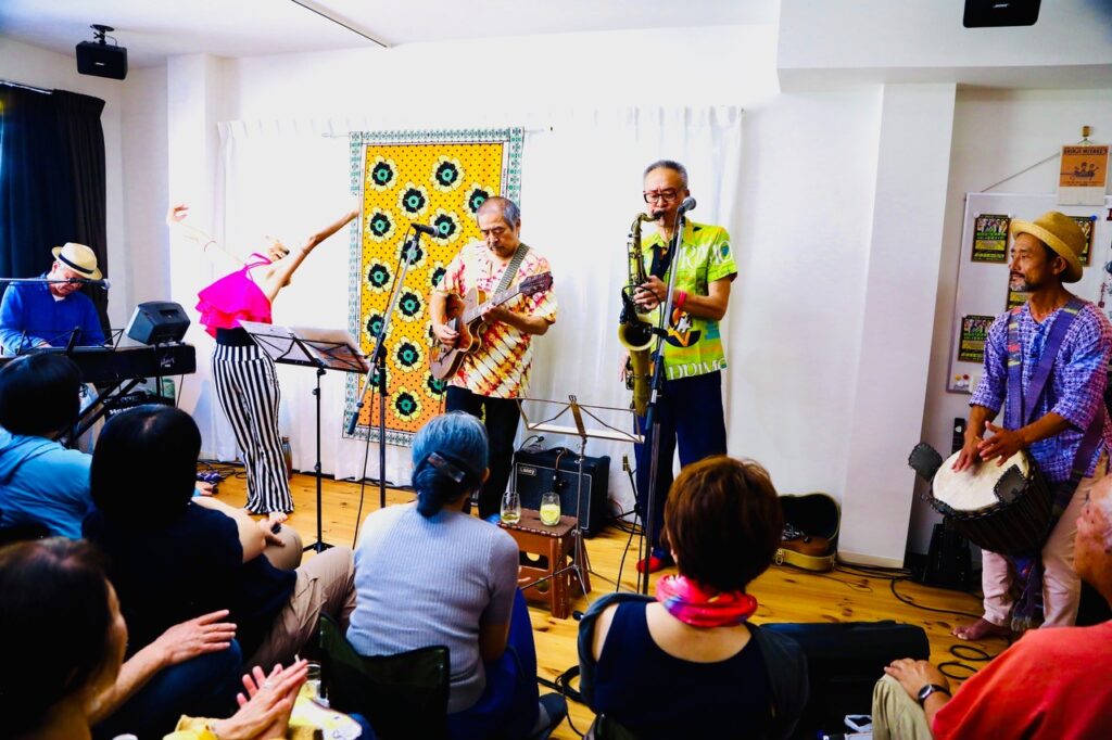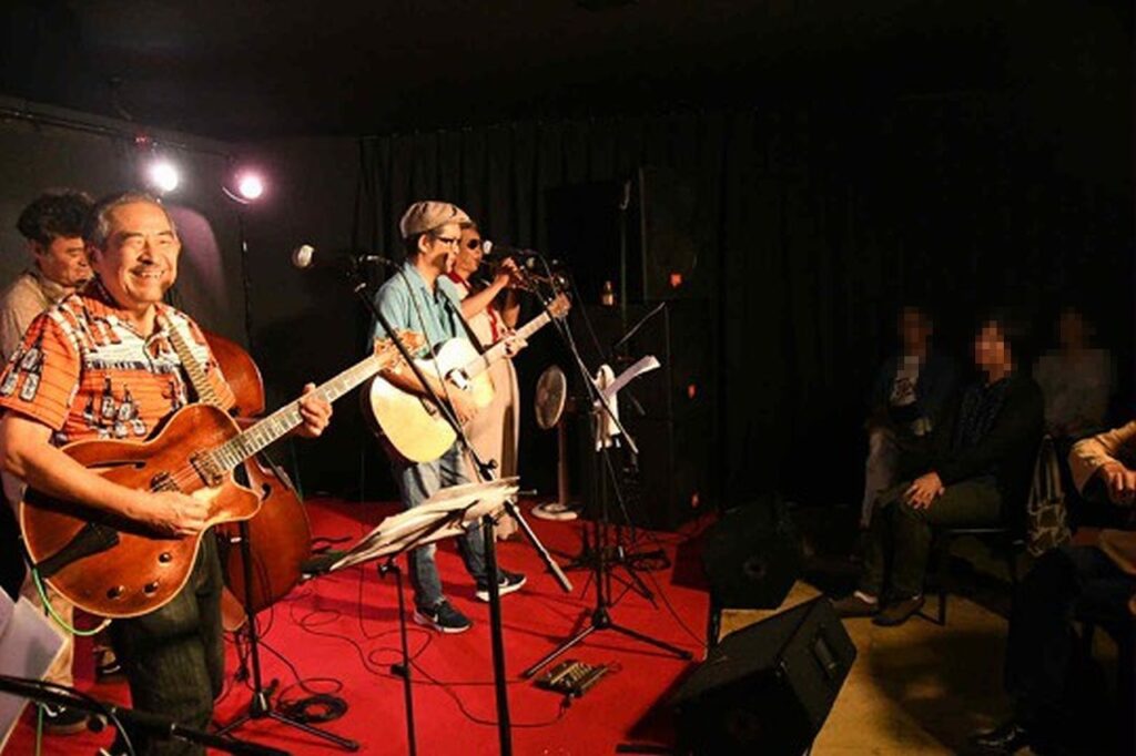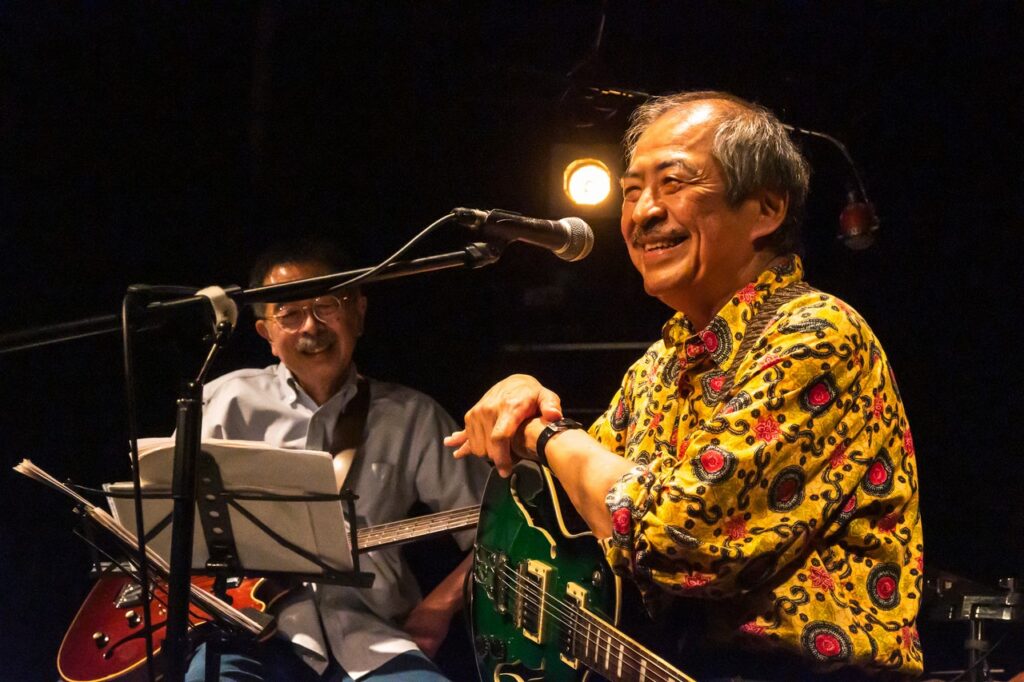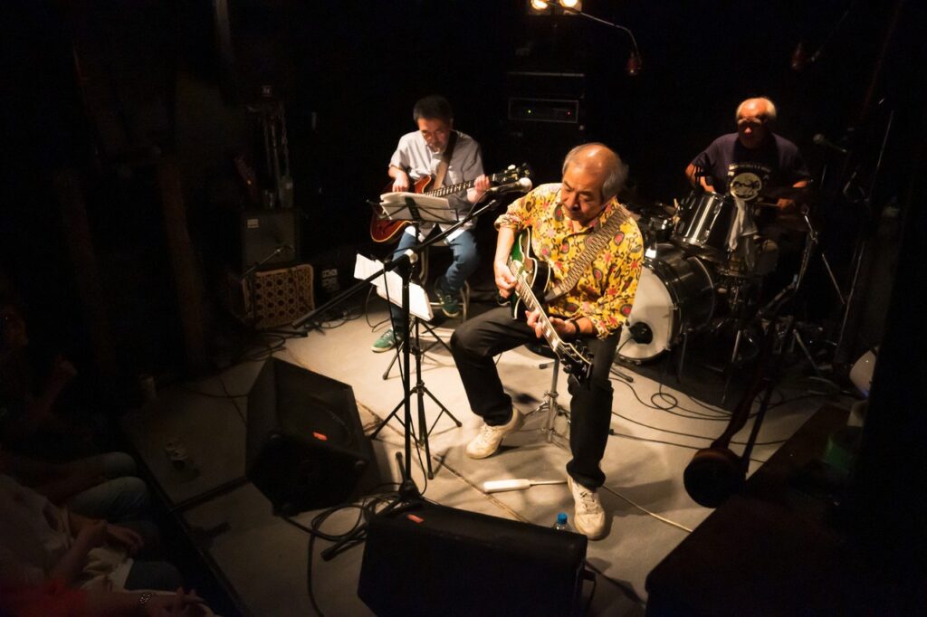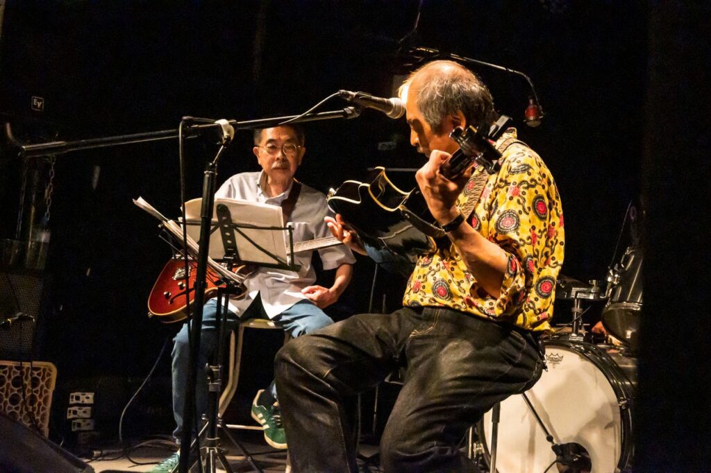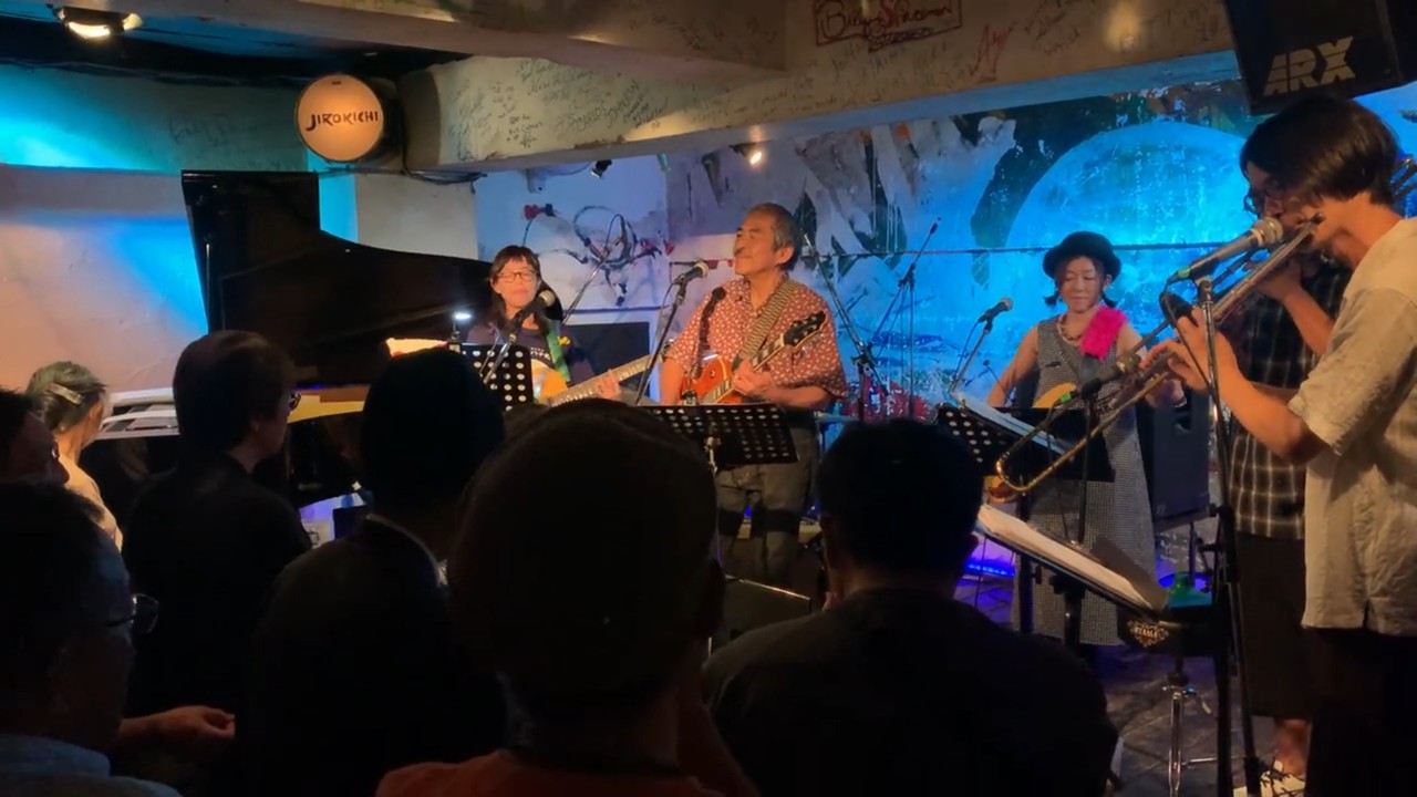 長い年月で身についたものはそう簡単には治らないものです。そして後半には更にお二人、オルガンの鈴木さんとギター/Voの山田さん、という方々も加わって、まさにセッション、という感じになってきました。