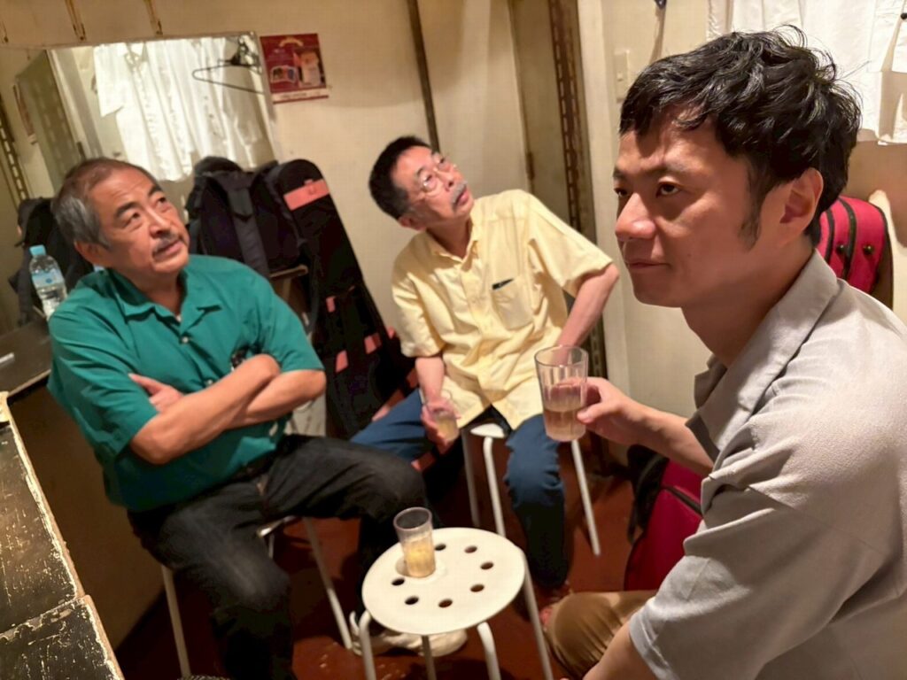 今回の別府公演は、その前日に岡地さんがシャッフル・マシーンのお二人と一緒にカラオケBARでのライヴがある、ということでした。行ったことはありませんが面白そうなお店ですね。