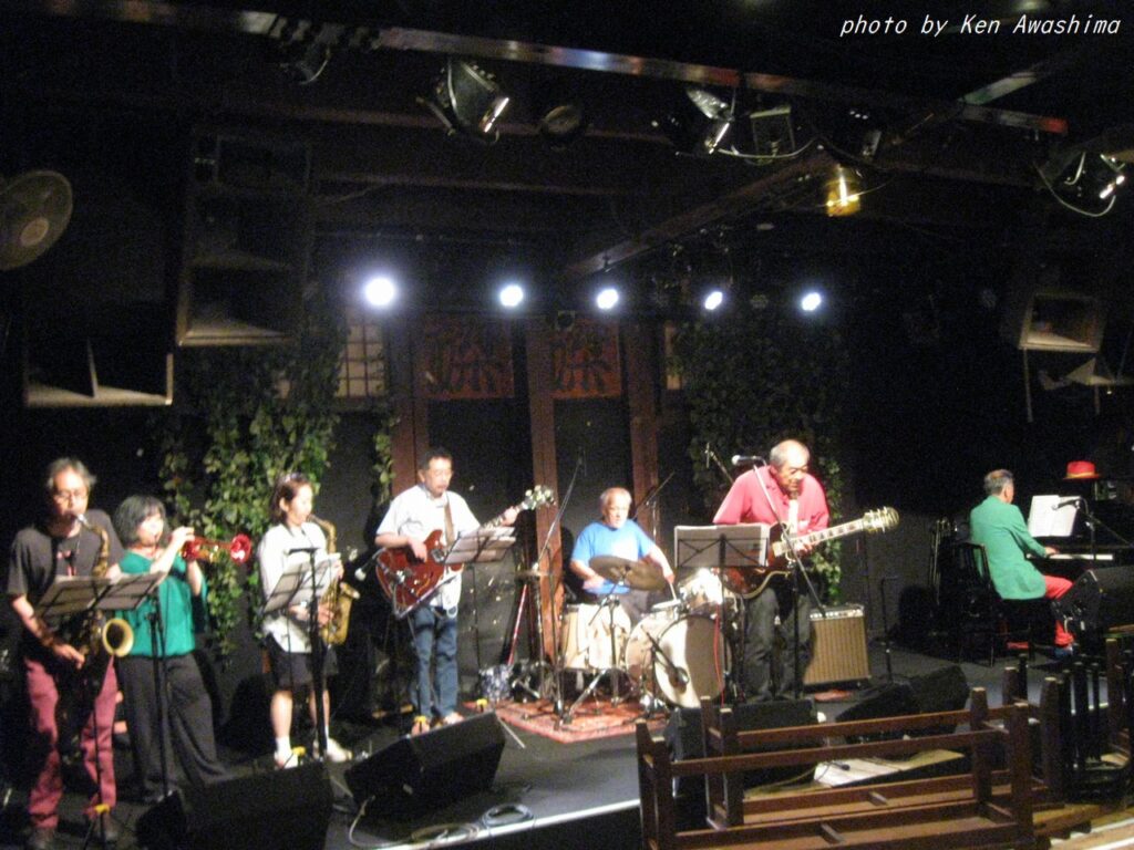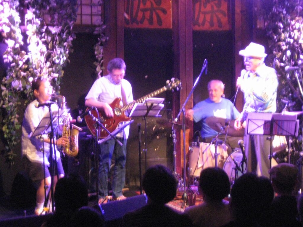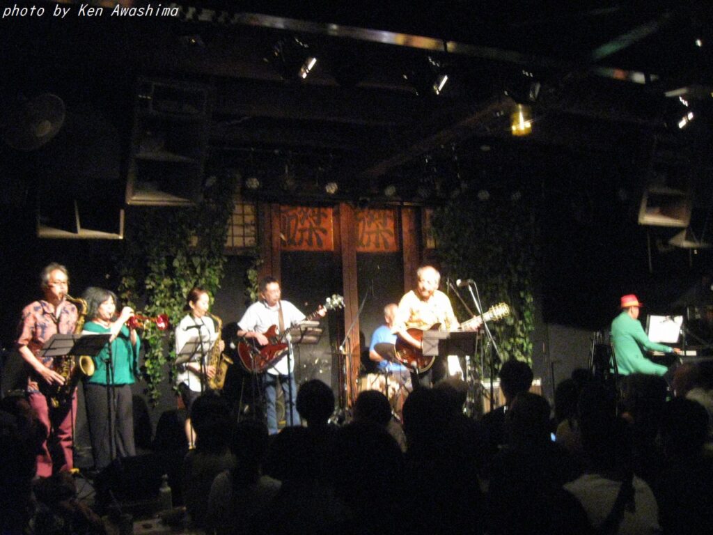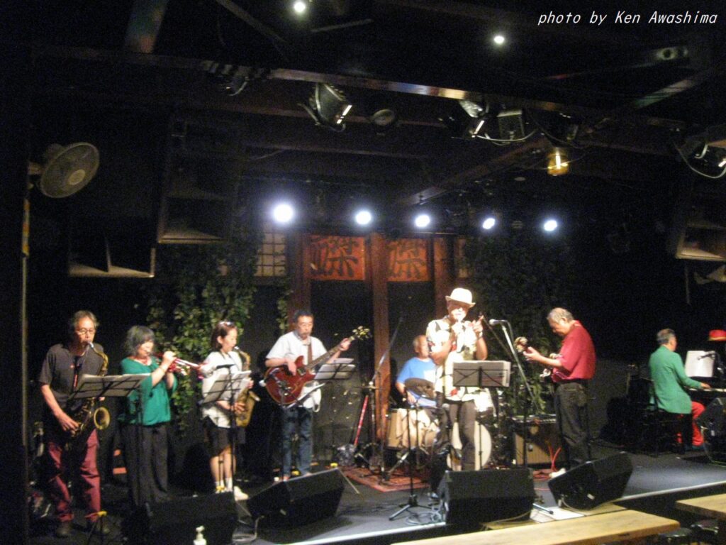 ところが人生は何と数奇なものでしょう、吾妻とこの山田さん、実は初対面ではなかったのです!実は吾妻が25歳ぐらいのころ、もう既にBoppersを始めていましたが、何でも他にもジャンプを演奏かるビッグ・バンドがあってそれが次郎吉にやってくるらしい、というのを聞きつけてそのバンドを見に行ったのです。キャブ・キャロウェイや、ルイ・ジョーダンの曲をやっていたおぼろげな記憶はありますが、詳細は忘却の彼方です。しかし、これまでの人生で片時も忘れたことが無かったのが、そのバンドが「福岡から来たアップタウン・オーケストラ」だった、ということでした。そして何とギター/Voの山田さんは、そのアップタウン・オーケストラのリーダーだったのです!