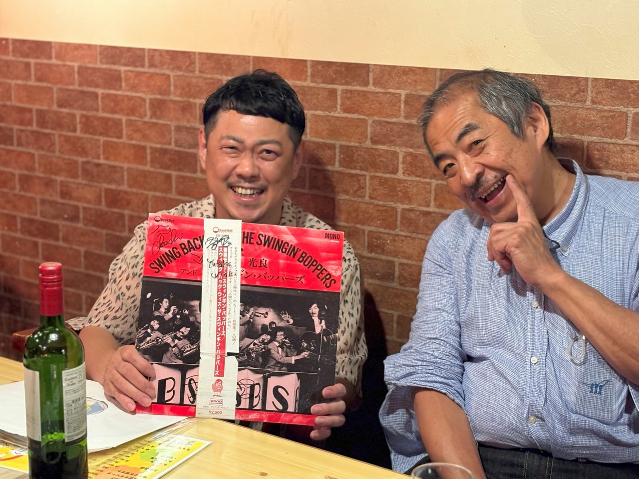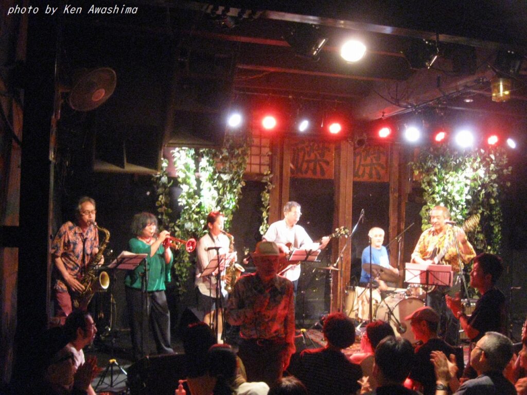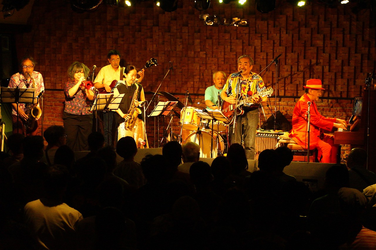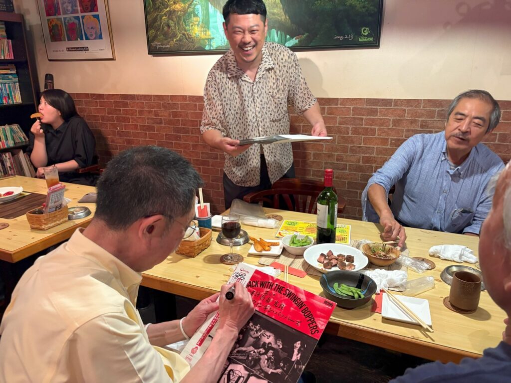 ところが人生は何と数奇なものでしょう、吾妻とこの山田さん、実は初対面ではなかったのです!実は吾妻が25歳ぐらいのころ、もう既にBoppersを始めていましたが、何でも他にもジャンプを演奏かるビッグ・バンドがあってそれが次郎吉にやってくるらしい、というのを聞きつけてそのバンドを見に行ったのです。キャブ・キャロウェイや、ルイ・ジョーダンの曲をやっていたおぼろげな記憶はありますが、詳細は忘却の彼方です。しかし、これまでの人生で片時も忘れたことが無かったのが、そのバンドが「福岡から来たアップタウン・オーケストラ」だった、ということでした。そして何とギター/Voの山田さんは、そのアップタウン・オーケストラのリーダーだったのです!