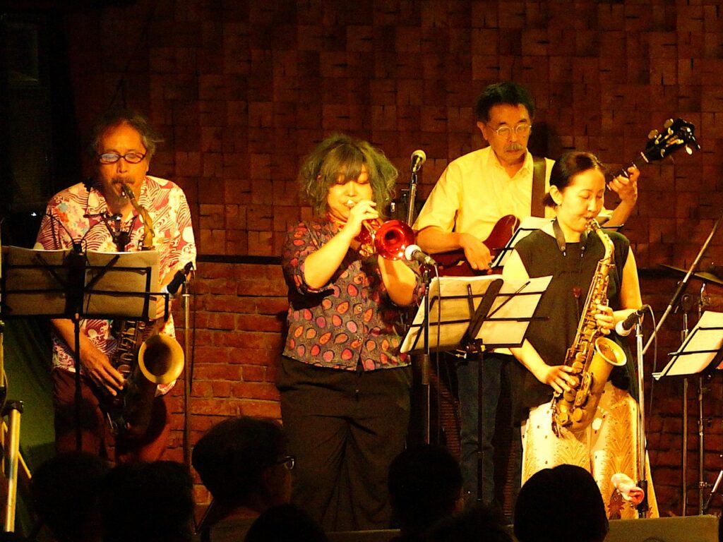 岡村おかみの率いる女性ビッグバンド、たをやめさんに久々にゲストとして呼んでいただけることになりました。前回呼んでいただいたのはかなり昔ですが、なかなか楽しかった記憶があり、その後もすみだJAZZの打ち上げで一緒に居酒屋で突然演奏を始めたりしたこともあってなかなかなご縁を(勝手に)感じたりしているのであります。そんなこともあって2年前ぐらいの阿佐谷ジャズストリートで、出かけようと駅前を通ったら岡村おかみが駅前で演奏しているのに気づき、「岡村ちゃん、岡村ちゃん!」と挨拶しようと寄って行ったら不審者と間違われて止められたこともありましたっけなあ。