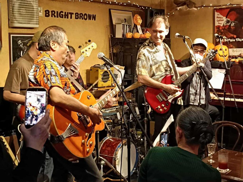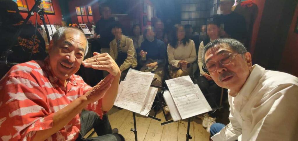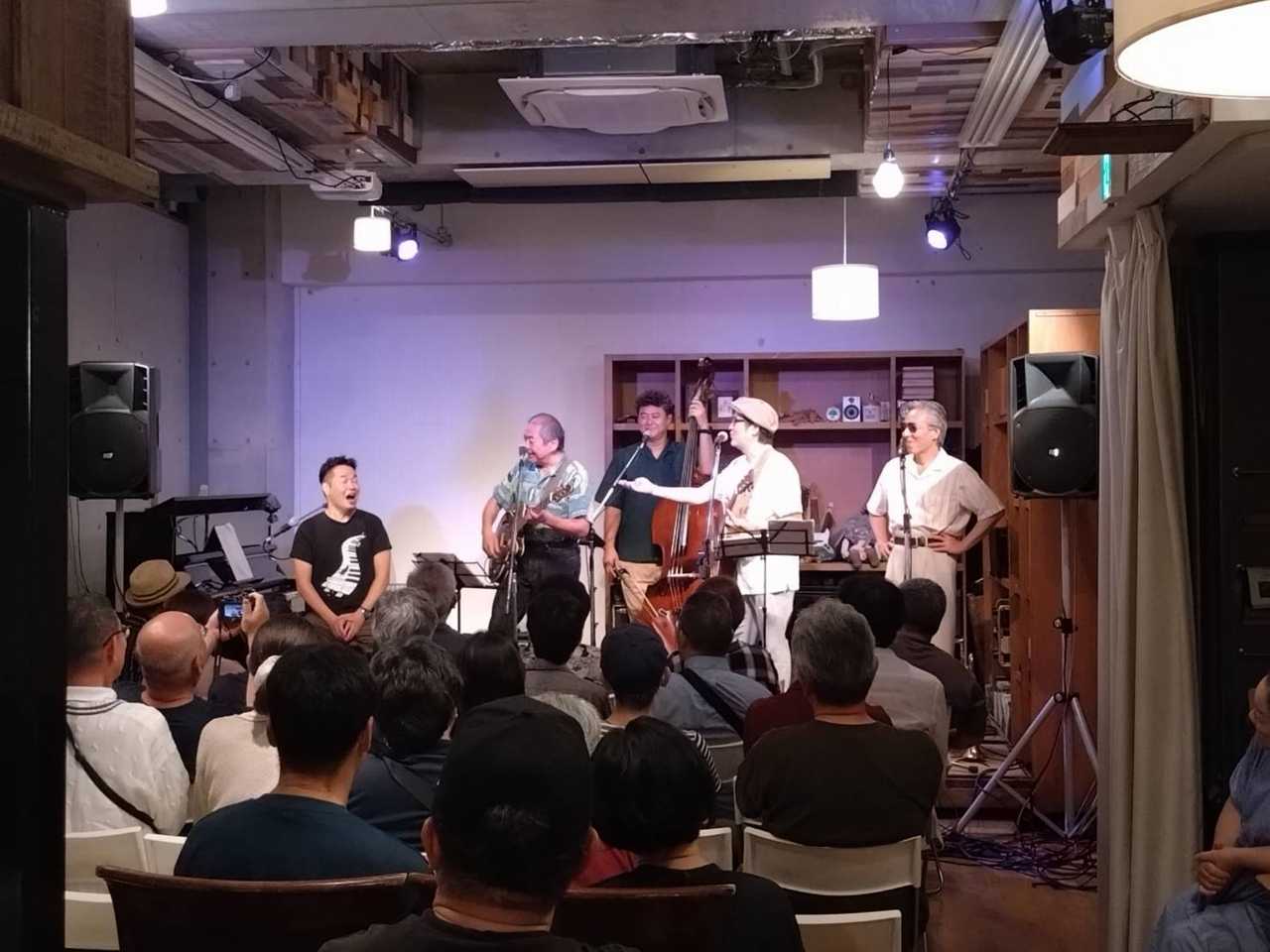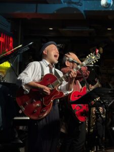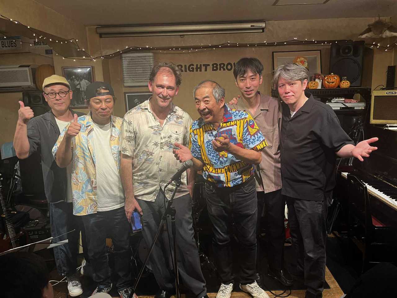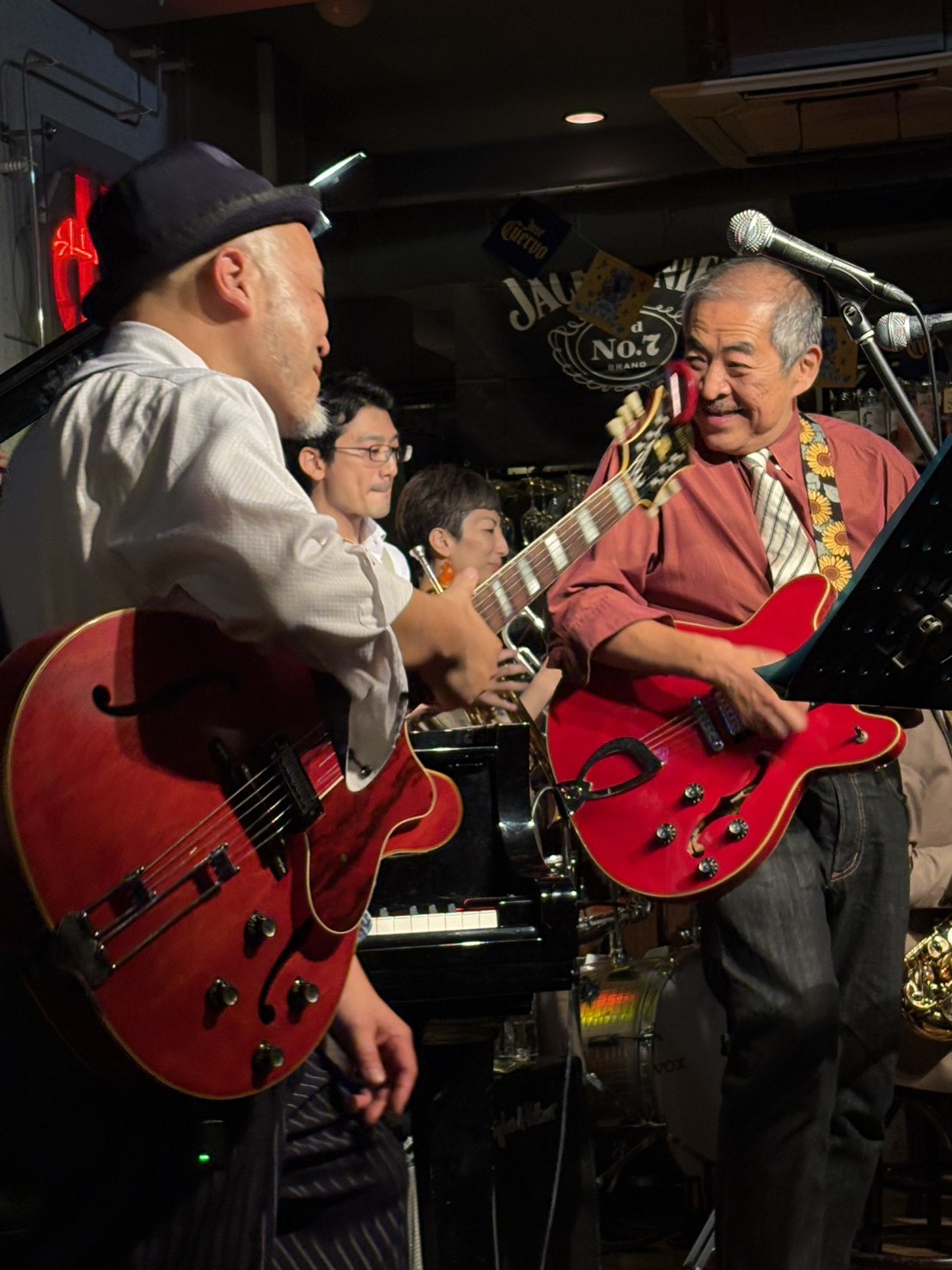 阿佐谷ジャズではアルトの斉藤さんにお世話になりましたが、弊楽団が同じぐらいお世話になっているのが、東京のもう一つのジャンプ・ビッグ・バンド、富山君率いるドリンキン・ホッピーズでありまして、あ、あと関西の井尻君率いるルーズ・ヘップキャッツにもお世話になってますが、ともかくコロナの時などは本当に代打の方々に何度も手伝って頂きました。そんな彼らの浅草HUBでのライヴにゲスト参加してほしい、ということで加えて山登りの準備でもお世話になっていますし、これは断れるわけがありません。近隣でたしなんだ後、第一部は彼らだけのステージ。