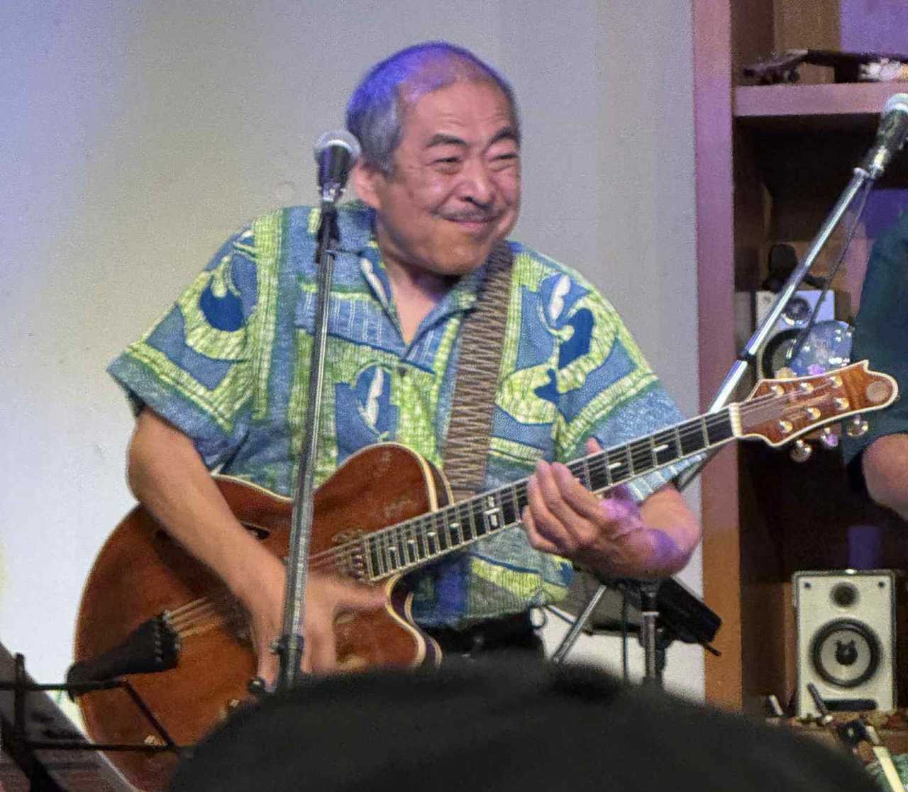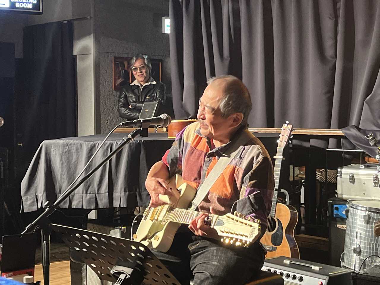 曲はカラスの「軍手の煮びたし」で、ワンコードでソロを弾くコージー、というのもなかなか珍しいものでした。