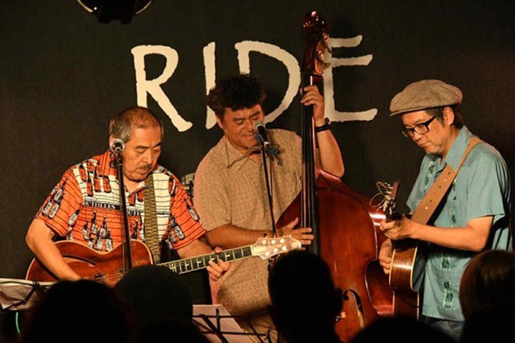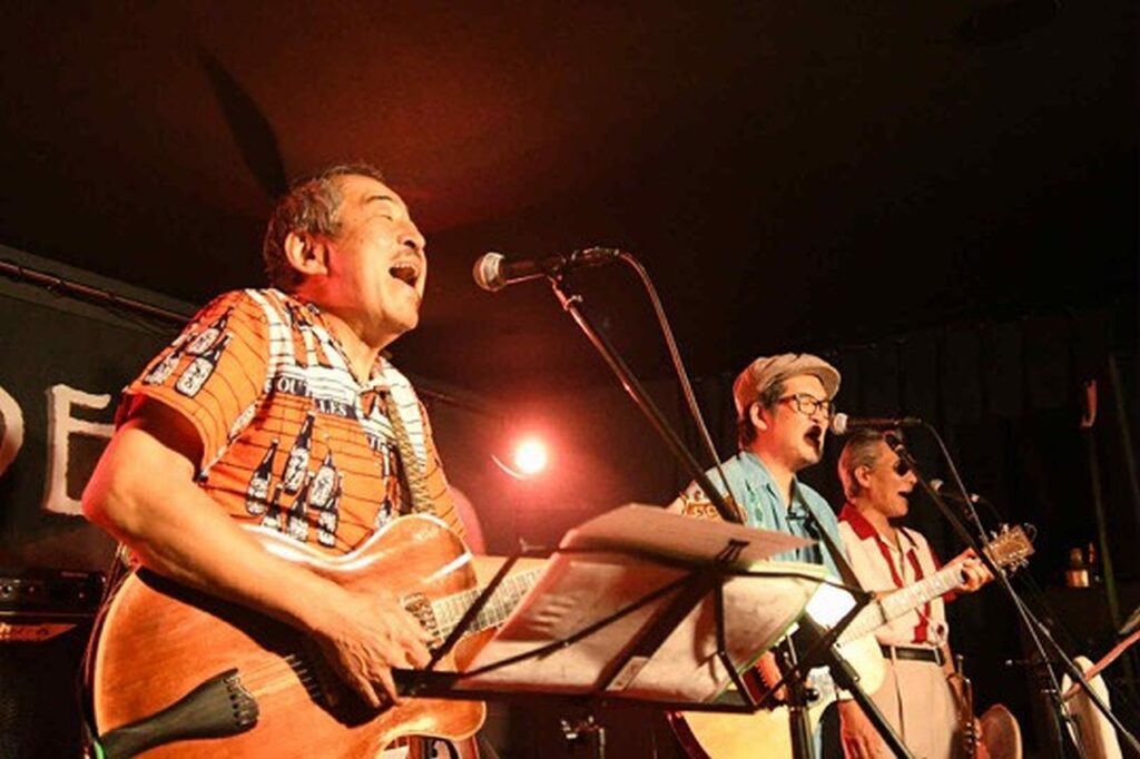 吾妻光良(vo,g)、岡地曙裕(dr)、早崎詩生(pf)