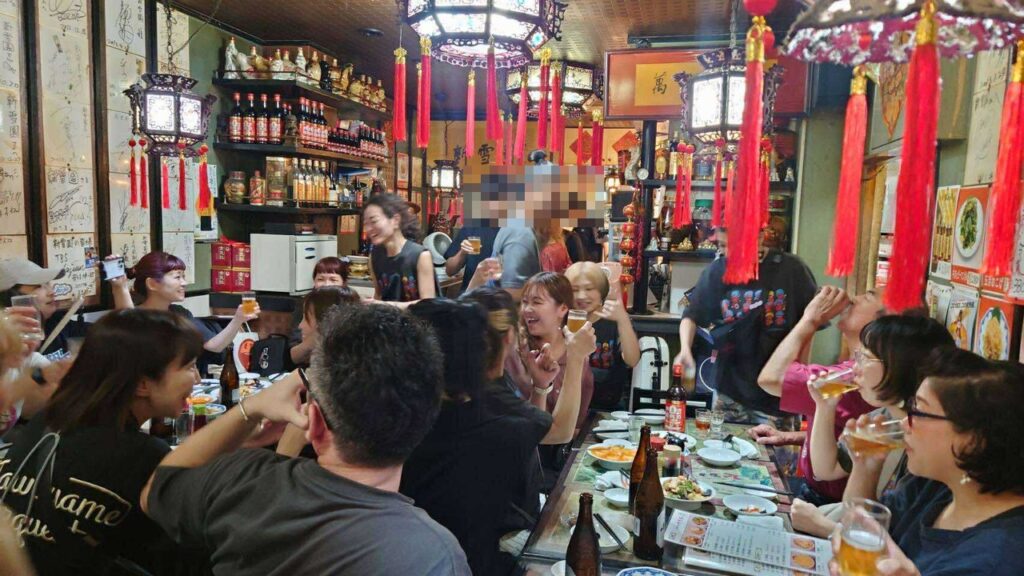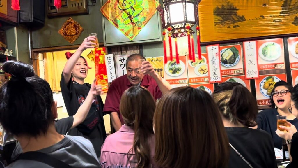 さて、終了後は近隣の中華屋で打ち上げです。一応、お定まりの「人生には七つの海があると申します」的な祝辞を述べたらすぐに乾杯!