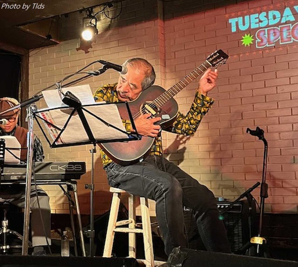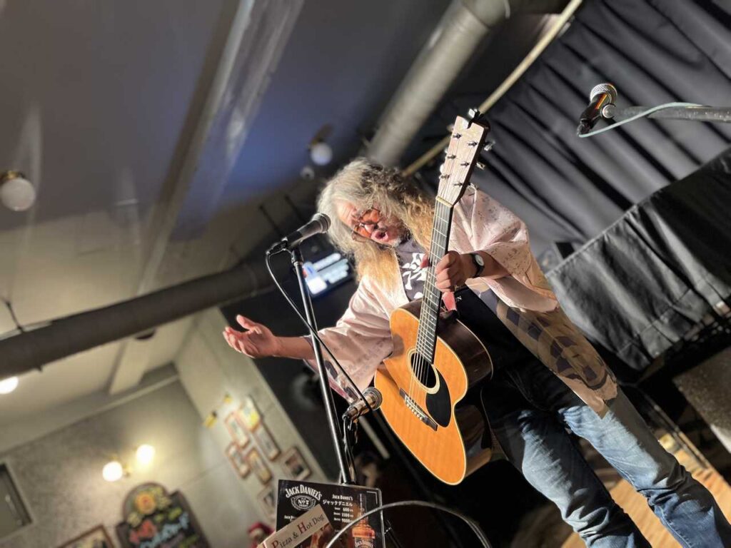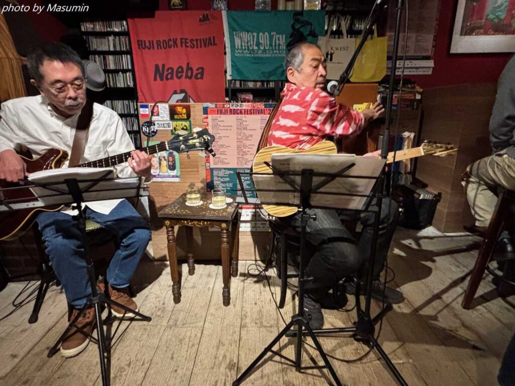 前回までは生ギター、ということにこだわって電気を使わない方針でやっておりましたが、ブライトのスーさんからちょっと物足りない、という意見を頂いていたため、今回からピックアップとアンプも使って、前回比2倍ぐらいの音量でしたでしょうか。スーさんからは、下の店に響くので足踏みはもう少し控えめにお願いします、と注意されまして、いや、階下の店はスマホ居酒屋なので、これぐらいしてやった方が良いんです、と言いそうになりましたが、ブライトを苦境に追い込むのは本意ではありませんので、以降は留意しました。