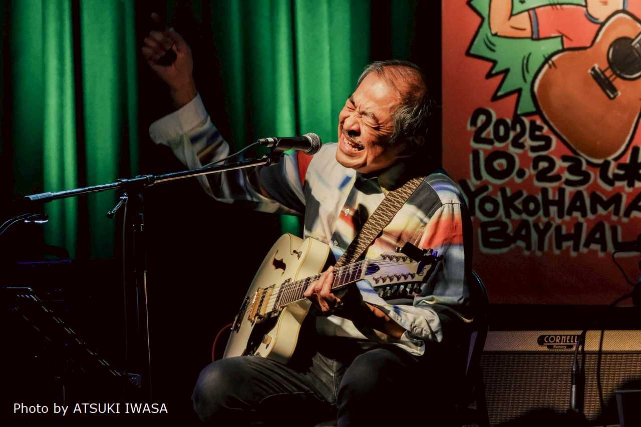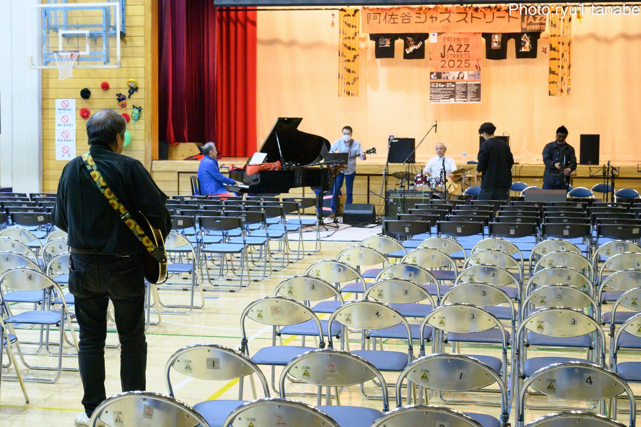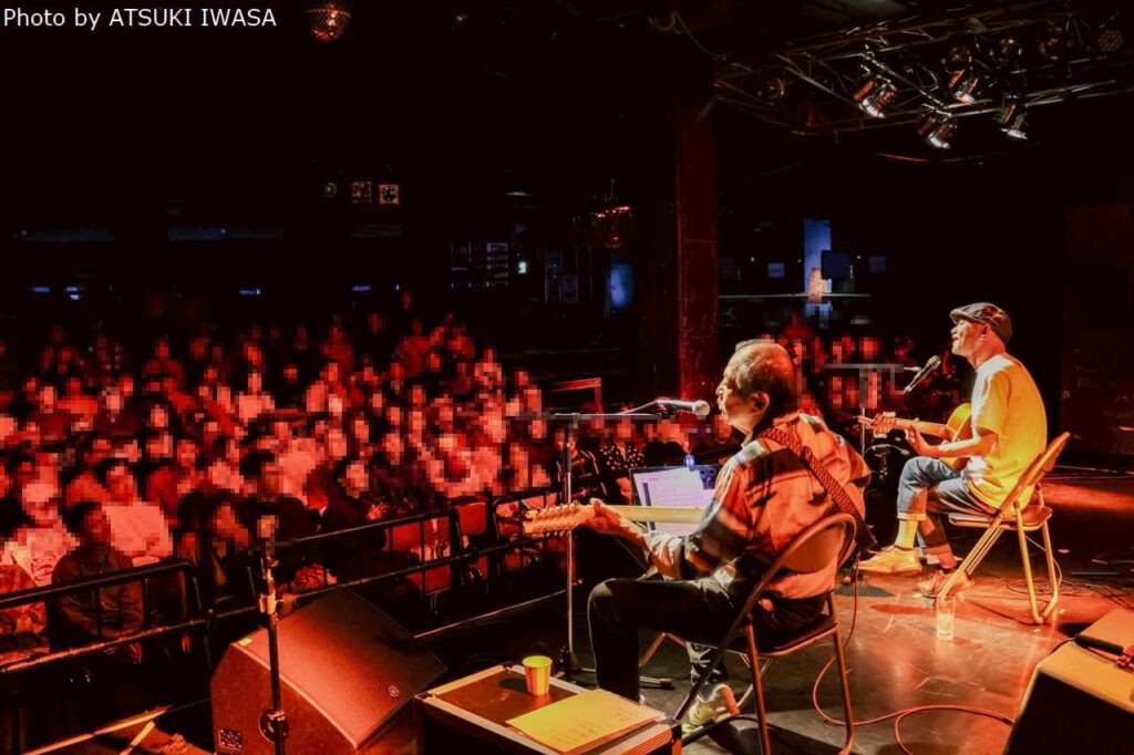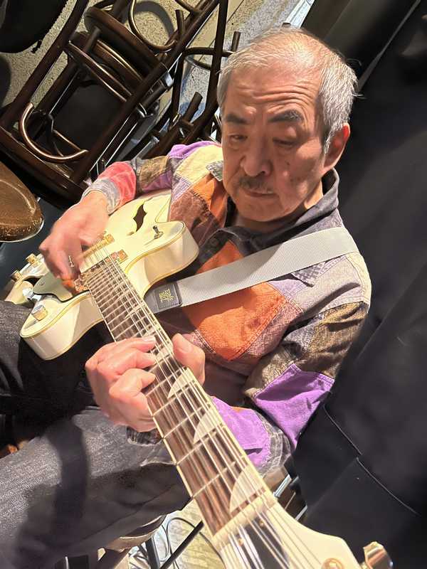 当然、話題は入院や病気の話になるのですが、もう少し若い頃は、こういう話をしてもネタにして笑ってる風情もありましたが、さすがにここに来ると、医者は何と言ってたんだ、前兆とか自覚症状はあるのか、差額ベッドはキツいのではないか、など内容も妙に具体的になってくるものです。リハも無事に終わり15:00からの1stステージ、例年のお約束通り、別ギターを持って客席から出ていく吾妻ですが、今回のギターはテレオリン。