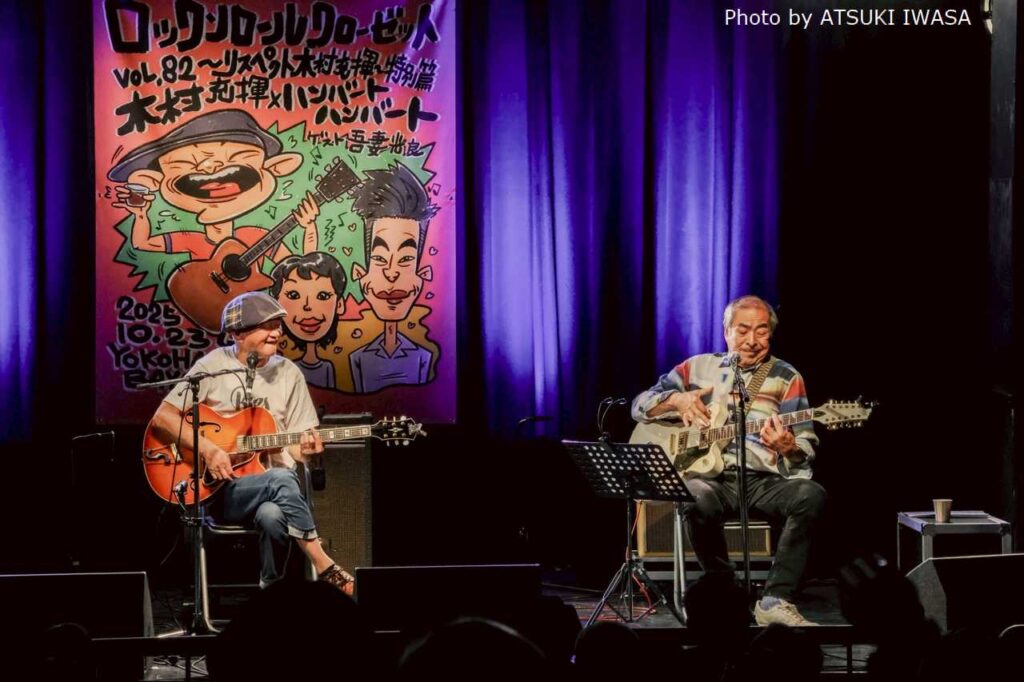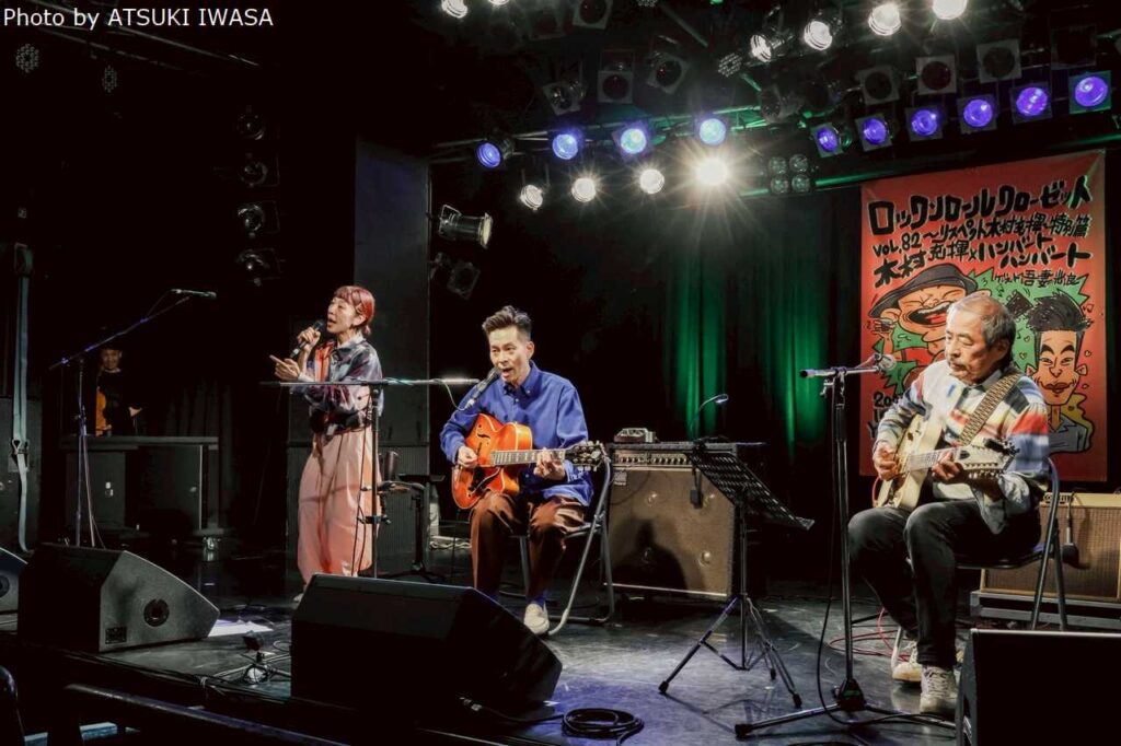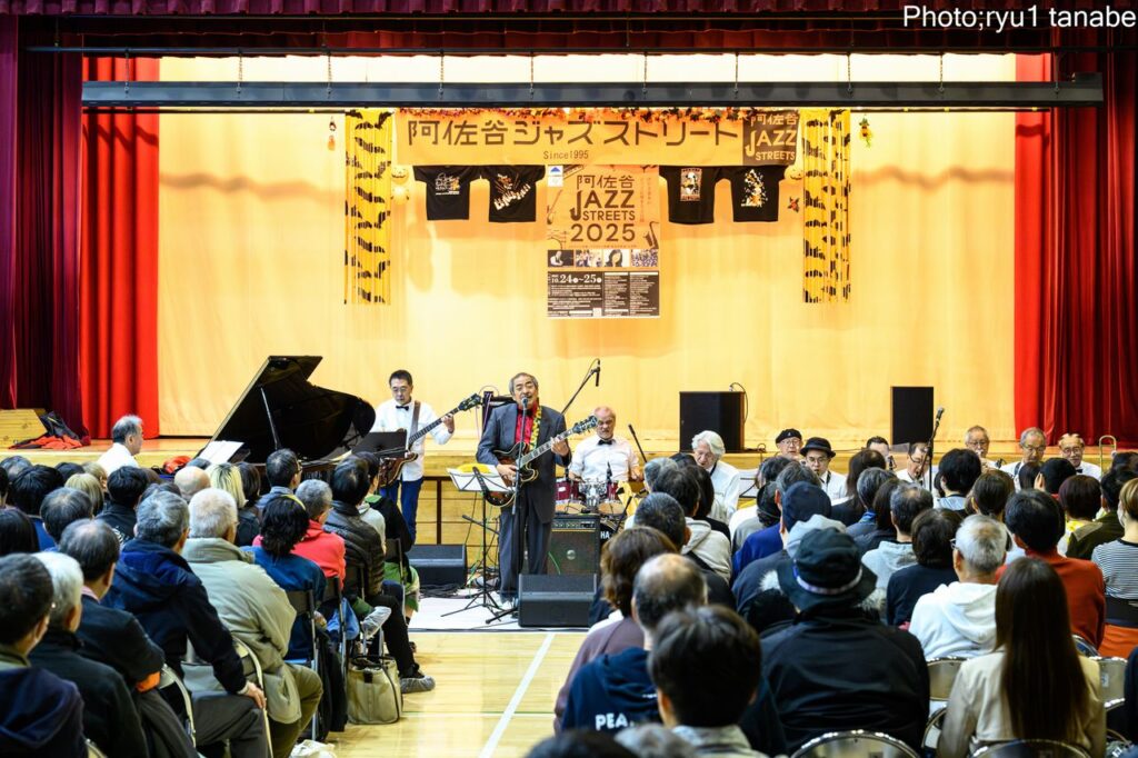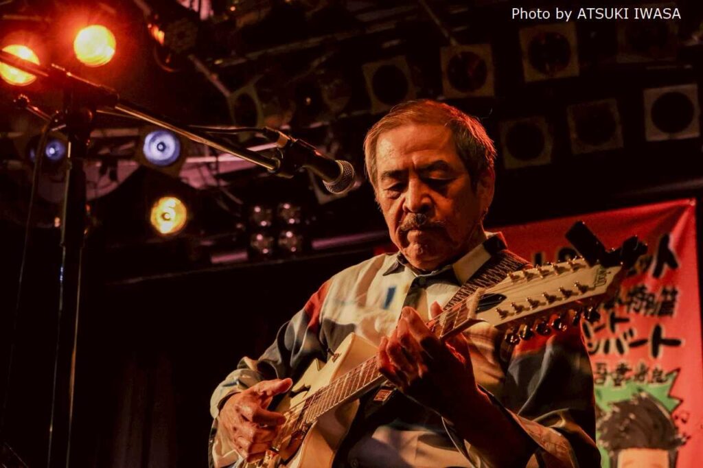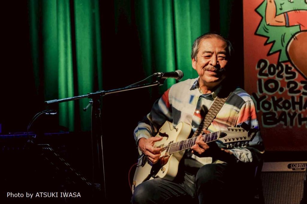 当然、話題は入院や病気の話になるのですが、もう少し若い頃は、こういう話をしてもネタにして笑ってる風情もありましたが、さすがにここに来ると、医者は何と言ってたんだ、前兆とか自覚症状はあるのか、差額ベッドはキツいのではないか、など内容も妙に具体的になってくるものです。リハも無事に終わり15:00からの1stステージ、例年のお約束通り、別ギターを持って客席から出ていく吾妻ですが、今回のギターはテレオリン。