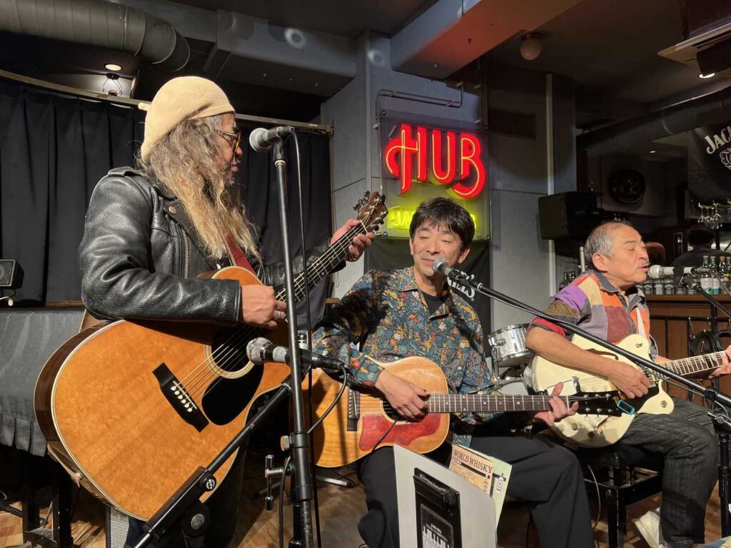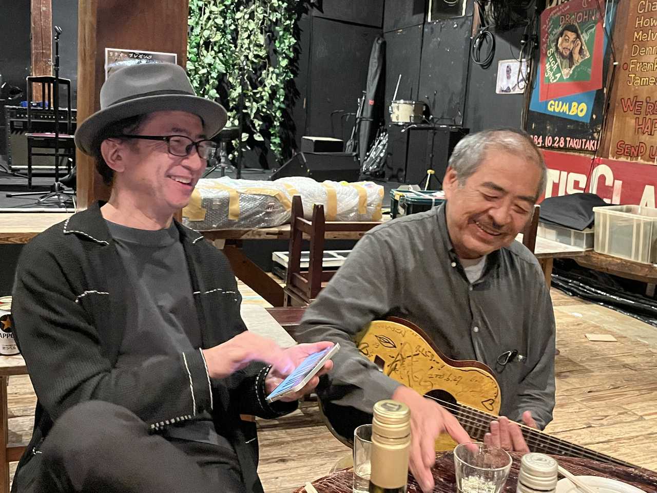 元はといえば、コージー大内のサポーター(?)だったHさんの企画で、浅草HUBでこの3名の弾き語り対決をやろう、ということになり、い、いや、ワシは弾き語りが苦手で・・・、などと言い訳をする間もなく公演が決定してしまいました。当日を迎える前は、対決とか勝負となると敗色が濃厚だなあ、とちょっと憂鬱でしたが、いざ現場に着くとそこは慣れ親しんだブルース業界仲間同士ですからすぐに盛り上がって嗜みに出かけました。