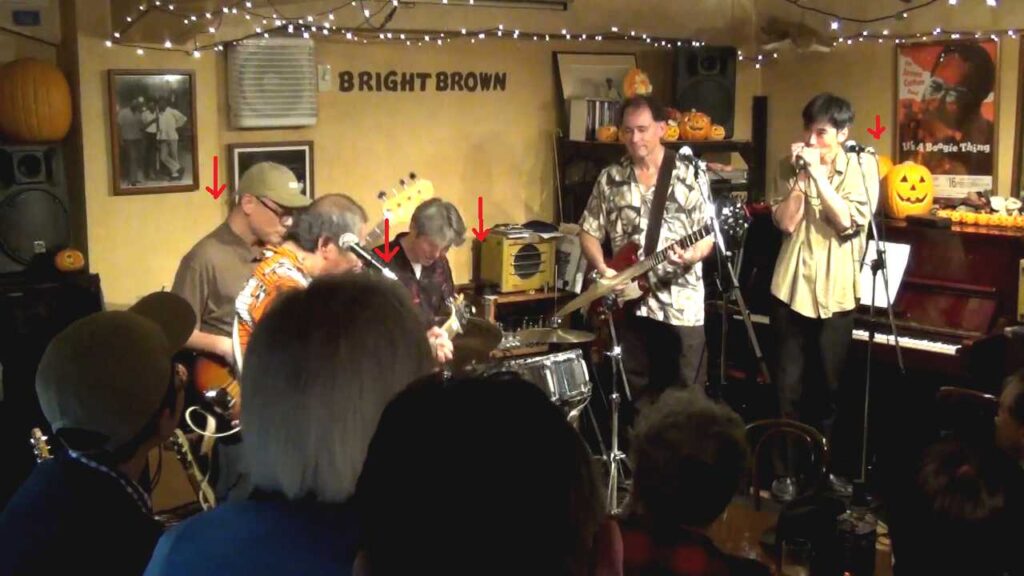 この日の吾妻のメインギターは、グレッグ・ベネットというメーカーの必要以上にぶ厚いギターでしたので、気分はもうT・ボーン・ウォーカーです。