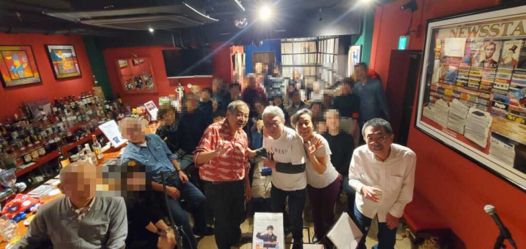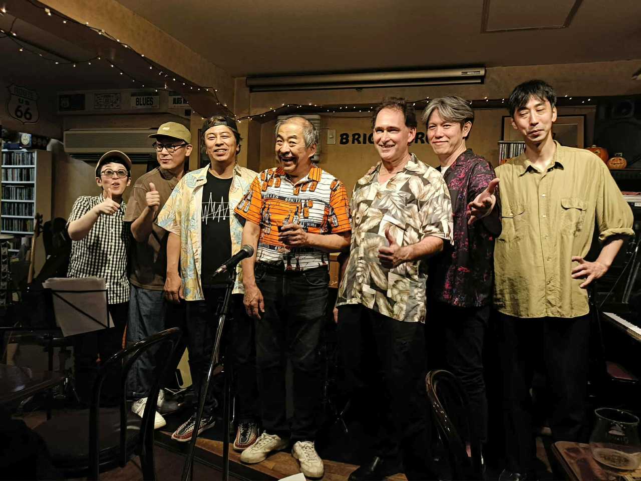 ライヴで入れている途中の語り部分には、最近の米国世相なども取り入れて楽しくお届けしました。終演後はお客さん方も込みで、先ずは7周年のお祝い。