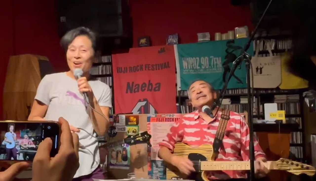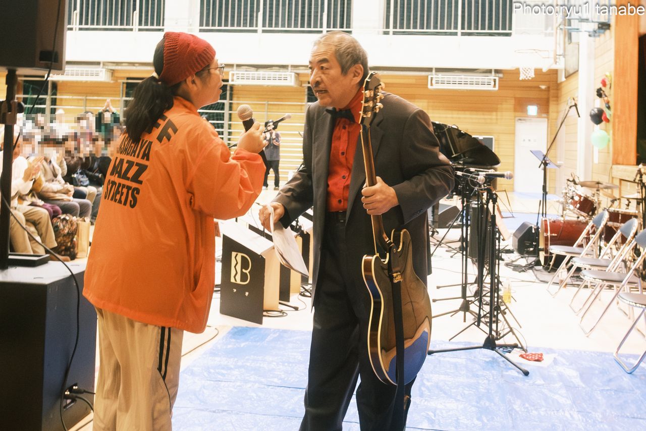 まあ、JOJOさんもそうですが、ゆっくりリハビリしていってほしいものです。そして数曲演奏すると後ろの方が妙にざわざわとしているので振り向くと、岡地さんが吾妻に紙を渡そうとしています。