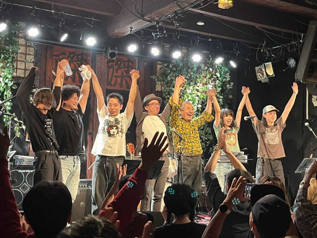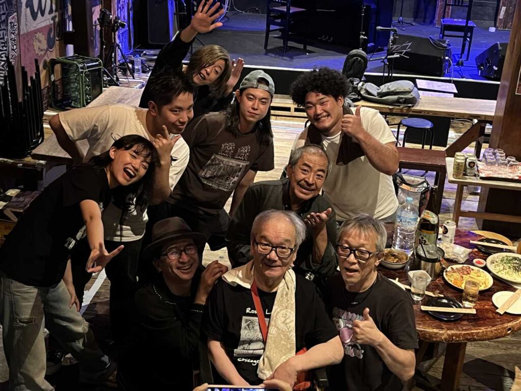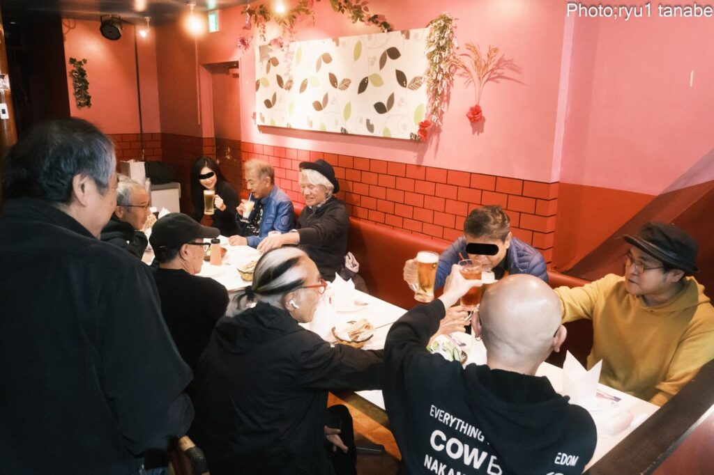 K君はこの写真の右端の方に存在が確認できますが、ステージでメンバーに「彼はオレの同級生でね」と吾妻が紹介すると「えええ」という謎のどよめきが起きたのが記憶に新しいところです。そして誕生日を祝ってもらっていつもよりご機嫌目盛りが上がっているコーゾーさんですが、