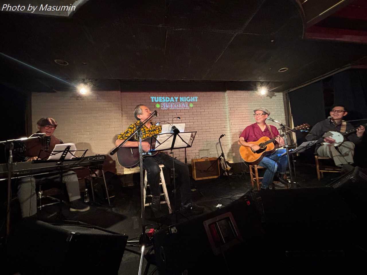 2024年も引き続き、トリオ+1で次郎吉のマンスリー・ライヴを演らせていただけるとはありがたいことです。一年の計は新年にあり、今年の抱負というかですね、活動方針としては、そうですねえ・・・、曲をもう少し開拓したいですよね。あと、キーとかを間違わない様にすべきでしょうね。それとスチールやマンドリンももっと上達したいですよね、え?それは個人的な目標だろ? そうですね、確かに確かに。バンド全体の抱負というと・・・、やっぱり健康第一、でしょうな。