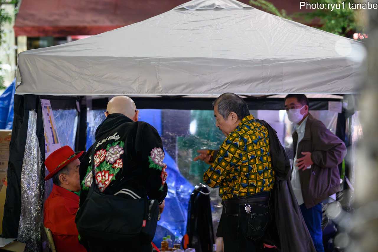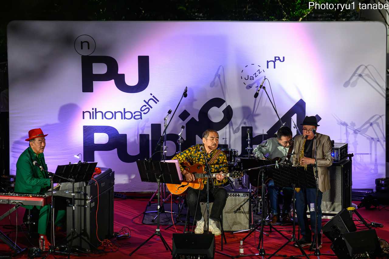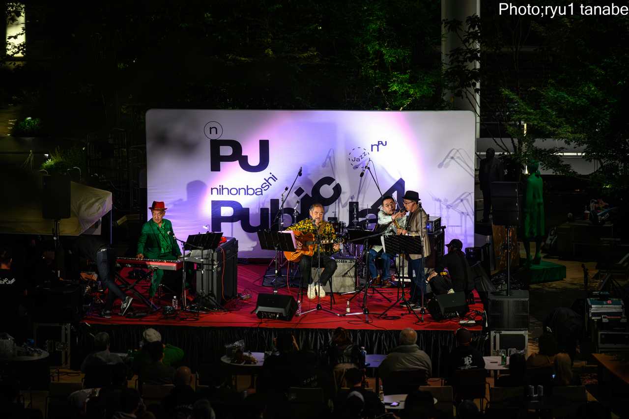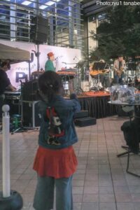 初めてお邪魔する「日本橋パブリック・ジャズ」という催しですが、そもそも日本を代表する様なオフィス街である日本橋とか室町、って来たことあるか?いやあ、俺は無いな、私もありません、あ、オレ取引先がいたから来たことあるよ、と4人中、この辺りに明るいのは牧さんのみ、という状況下、若干不安を覚えつつステージ脇のテントで準備と着換えと打合せを済ませます。