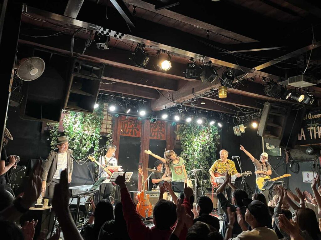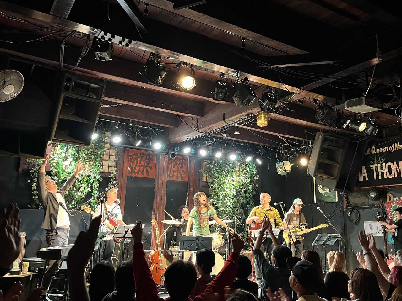 来日公演は昨年のJIROKICHIに続いて二年連続ですが、お客さんにとってもそう度々見られるものでは無いので、撮影している方々もおられました。そして海外生活が長いとやはりボディ・ランゲージも達者になってくるのでしょうか、こんなさながらルイ・ジョーダンの様な表情で唄われているところもありました。
